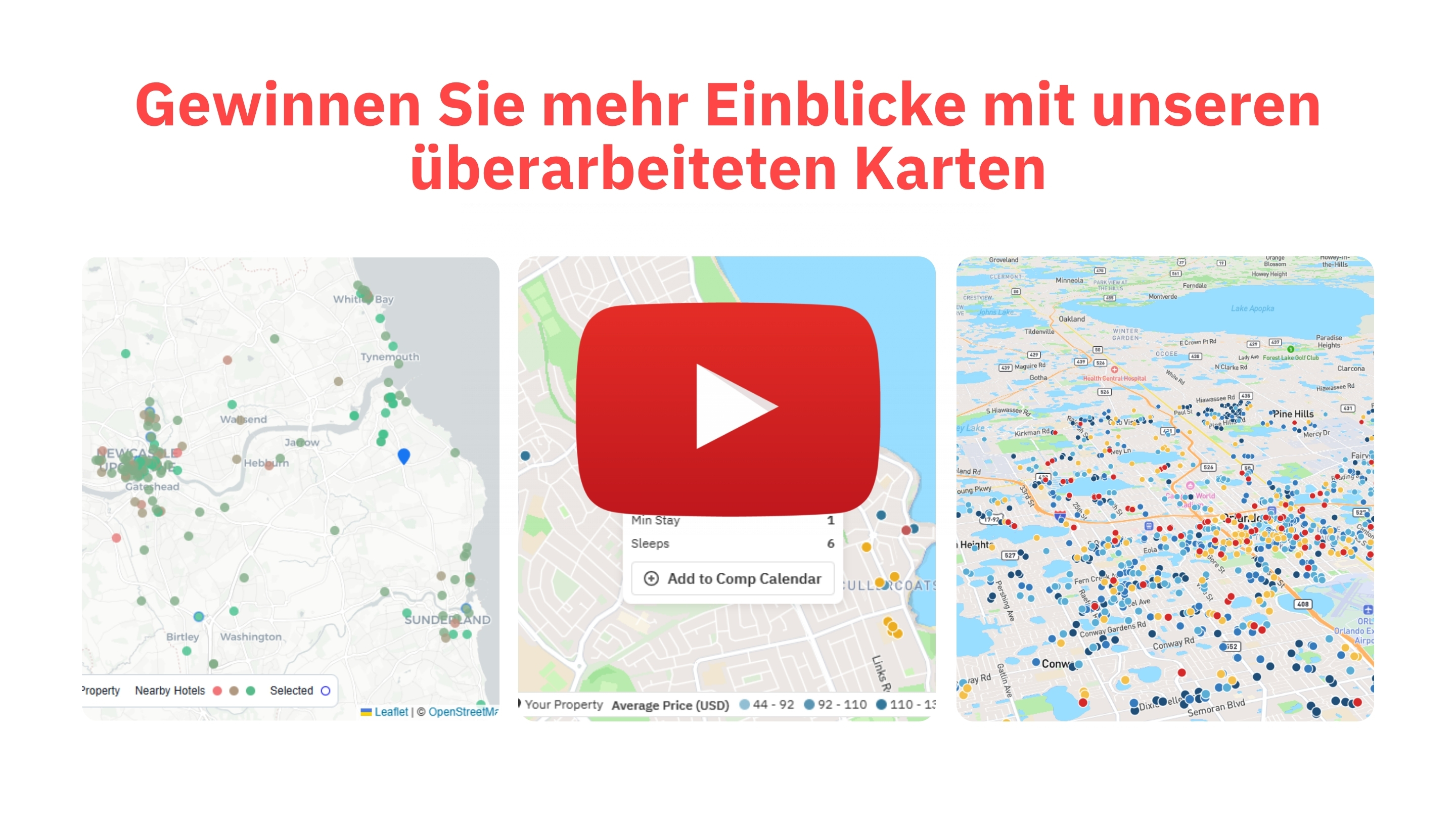 Für Sie ist es wichtig zu wissen, wie Ihre Objekte im Vergleich zum Wettbewerb dastehen und ob Ihre Preise die aktuellen Marktdynamiken widerspiegeln? Dann haben wir jetzt gute Nachrichten für Sie: Wir haben unsere Landkarten komplett neu gestaltet. Das Ergebnis ist nicht nur ein frisches Design, sondern bietet Ihnen auch entscheidende strategische Vorteile für Ihre Preisgestaltung. Die neue Karten-Erfahrung ermöglicht Ihnen: |