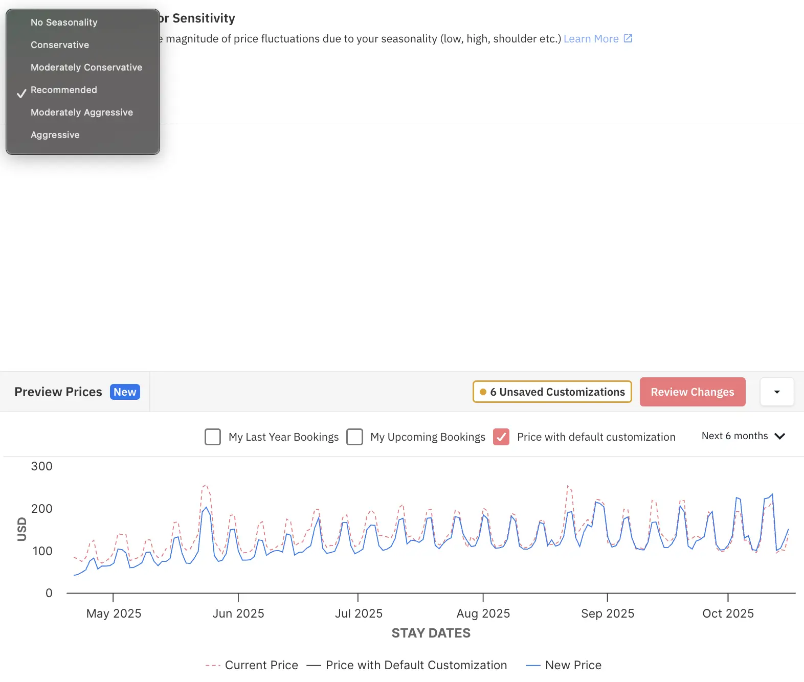 💡 Pro Tip: Instead of creating your own seasons according to your seasonality and setting different customization for each, you can trust our pricing algorithm and only decide how conservative or aggressive you want us to be.
