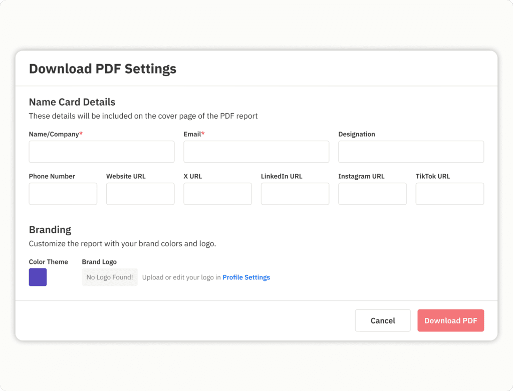 Download professional, share-ready reports for clients or internal analysis